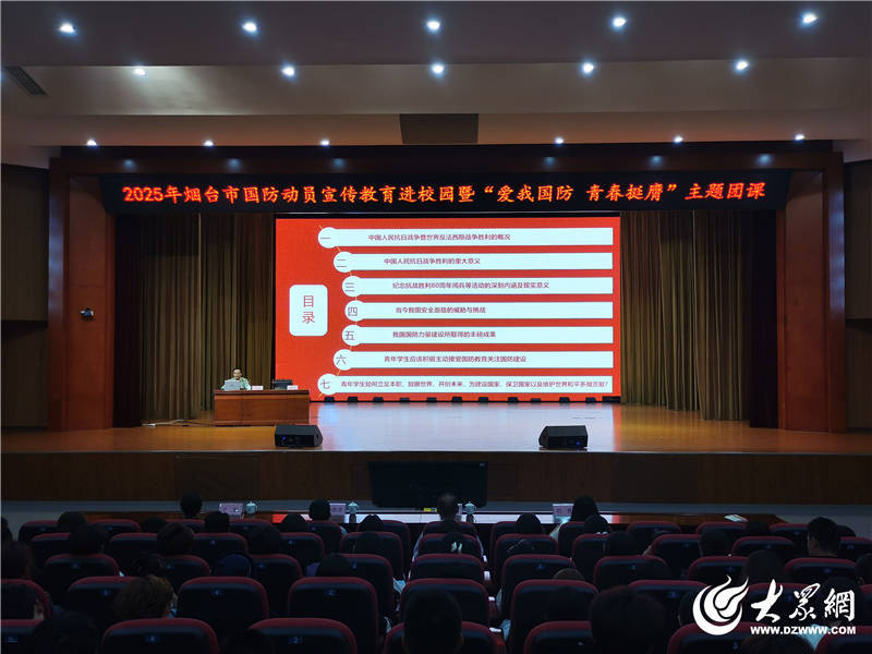 “今天,我非常荣幸能以一名军休干部的身份,怀着对国家和民族的深厚感情,站在这里,与烟台市的青年才俊们共同开启新学期的第一课。”课堂上,吕光亮结合自身丰富的军旅经历,围绕中国人民抗日战争暨世界反法西斯战争历史、当前我国安全面临的威胁与挑战、国防现代化建设成果等七个方面,通过图文并茂的课件和生动详实的案例,为大学生带来一场深入浅出的国防教育课,引导学生深刻理解伟大抗战精神,切实增强国家安全意识和忧患意识。